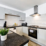 Modern kitchen with ample storage and appliances